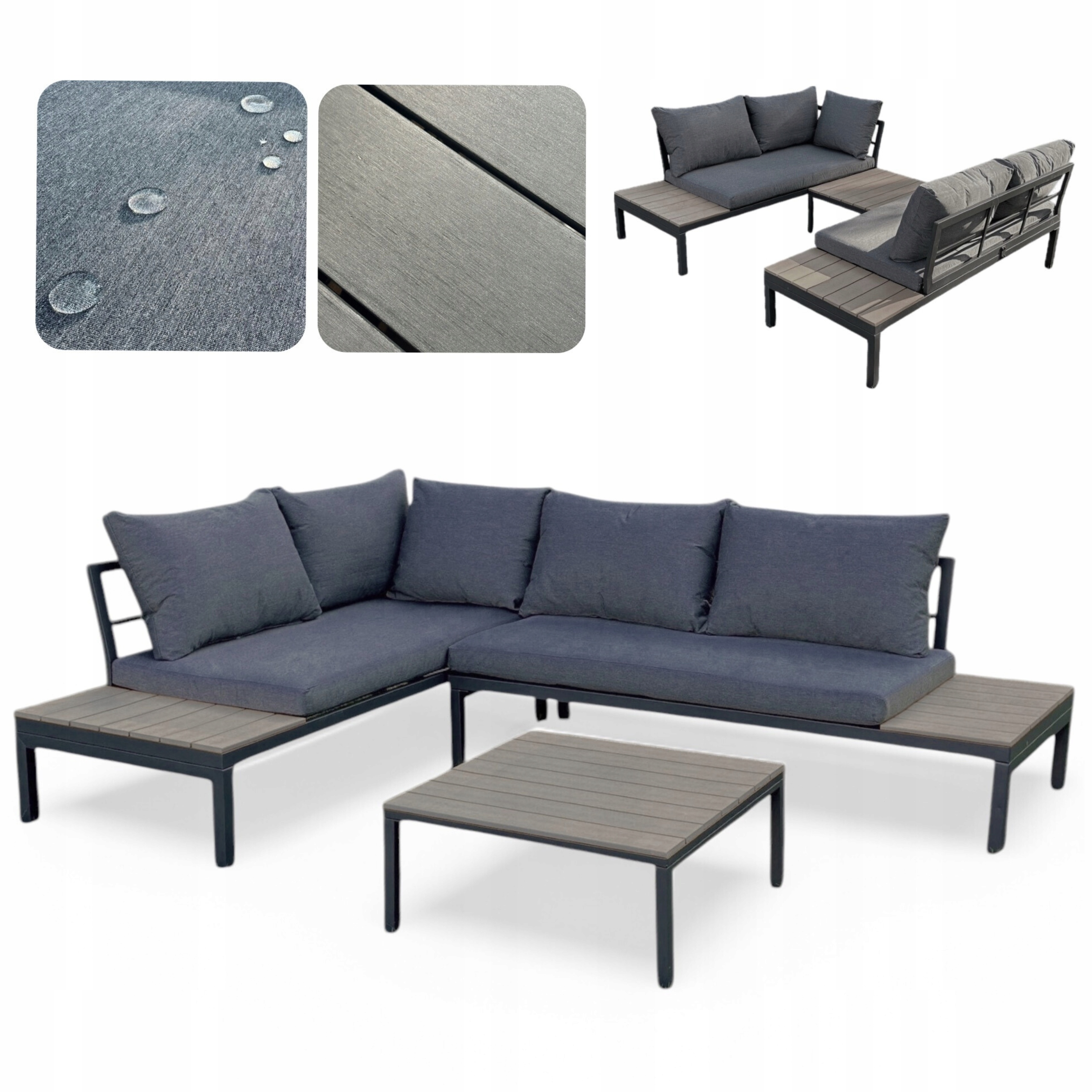 NAROŻNIK OGRODOWY MAS-XL-03 MEBLE OGRODOWE ZESTAW MEBLI OGRODOWYCH SZARY Zawartość zestawu narożnik stolik